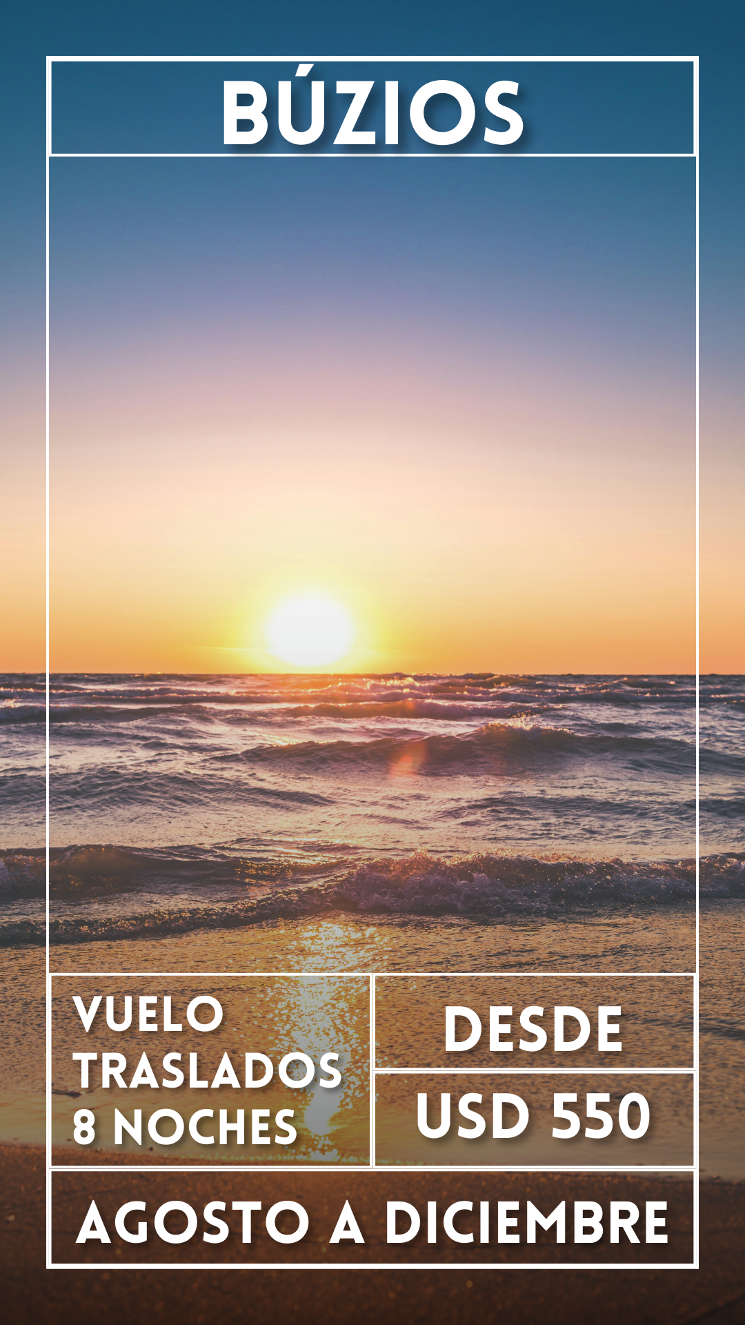Inicio un universoesperándote Encontremos juntos ese viaje que tanto necesitás HABLEMOS Destacados del mes búzios punta cana playa del carmen ¿A DONDE VIAJAMOS? Te asesoramos en todo lo que necesites para que tu viaje sea una experiencia única, hay un universo esperándote ESCRIBINOS